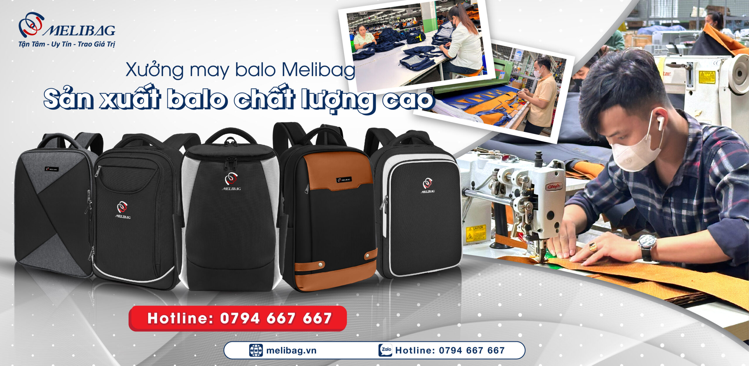 Xưởng may balo Melibag cam kết sản xuất chuyên nghiệp, thiết kế miễn phí, chất liệu cao cấp & giao hàng toàn quốc. Bảo hành 12 tháng, tiến độ nhanh chóng, giá cả cạnh tranh cùng dịch vụ khách hàng tận tâm và chuyên nghiệp. Giúp thương hiệu của bạn luôn nổi bật và khác biệt.