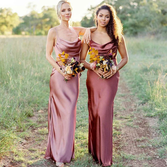 Lụa satin là dòng satin cao cấp nhất, được dệt từ sợi tơ tằm tự nhiên. Chất liệu này nổi bật với độ rũ mềm, bề mặt óng ả và cảm giác nhẹ, mát khi chạm vào. Lụa satin thường mang màu sắc trơn hoặc họa tiết tinh tế, rất được ưa chuộng trong các thiết kế váy dạ hội, váy cưới và trang phục cao cấp.