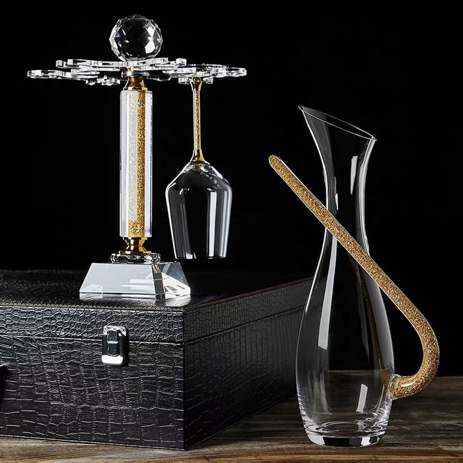 Set ly rượu vang pha lê kèm decanter là gợi ý quà tân gia sang trọng, thể hiện gu thẩm mỹ đẳng cấp của người tặng. Decanter giúp rượu vang “thở” trọn vẹn hương thơm, trong khi ly pha lê cao cấp tôn vinh vẻ đẹp của từng giọt vang.